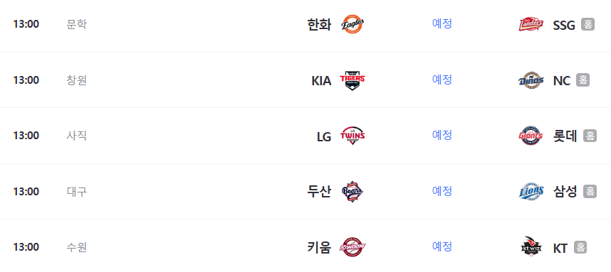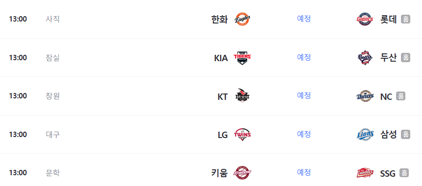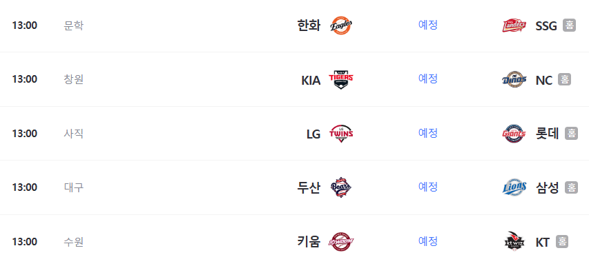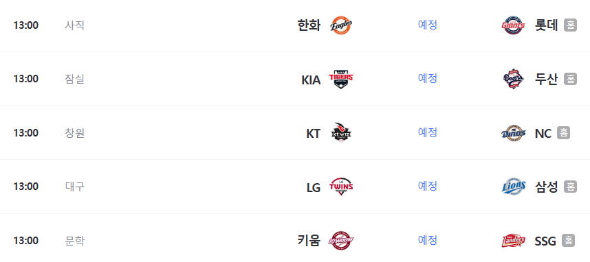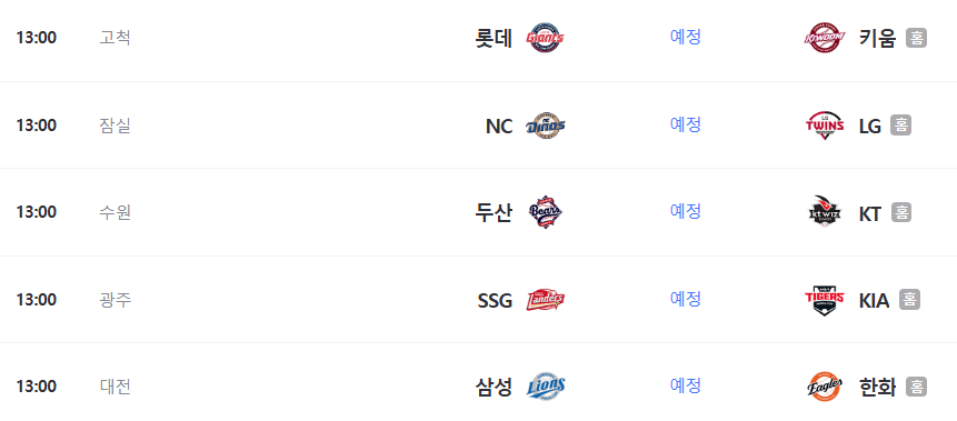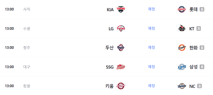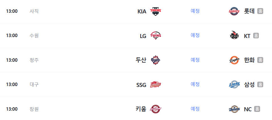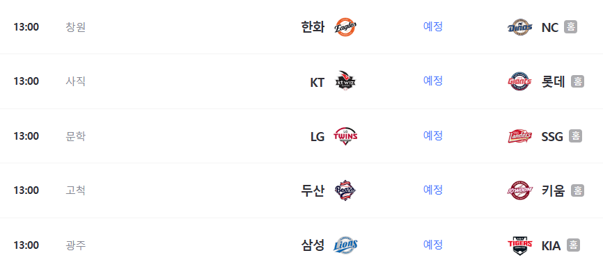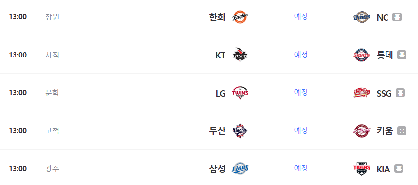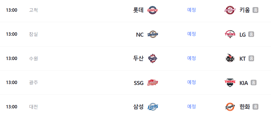 ▪ 모든 시범경기는 13시에 개시되고 연장전과 더블헤더는 실시하지 않습니다.