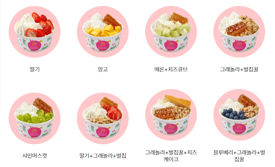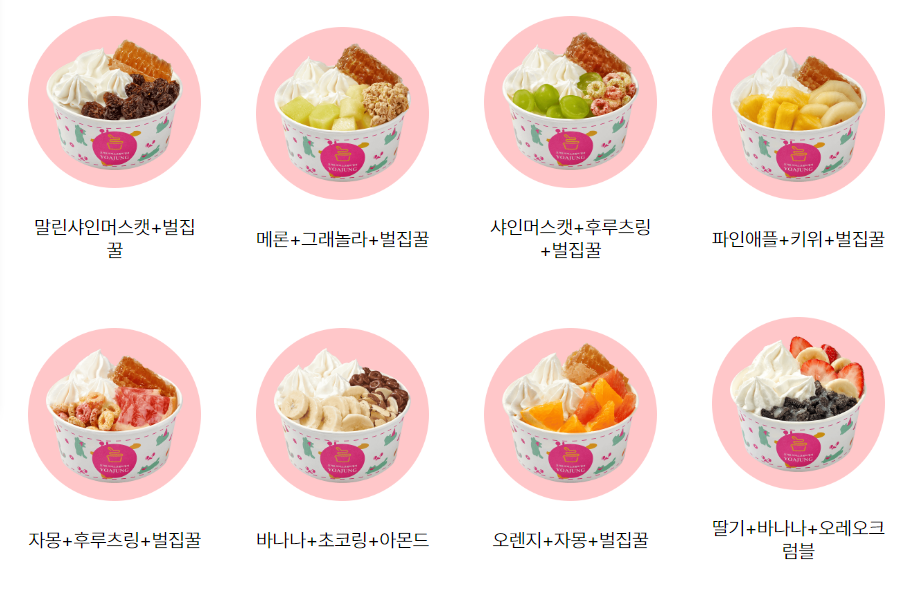 | 조합 | 요거트아이스크림 150g | 그래놀라 30g | 벌집꿀 30g | 총 |