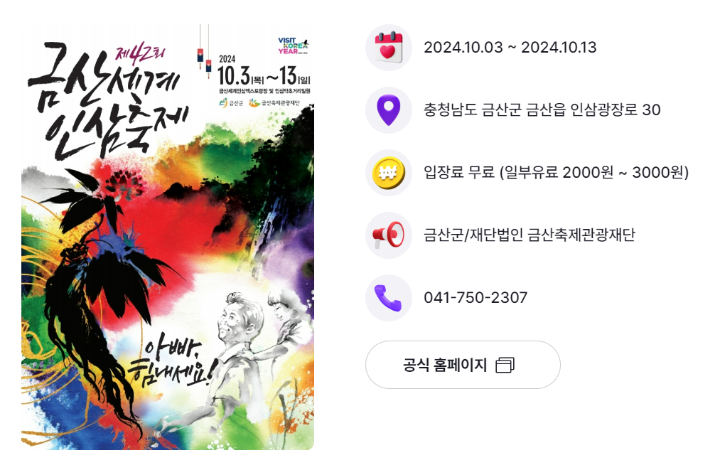 ✅ 장소: 금산인삼엑스포광장 및 인삼약초거리 일원