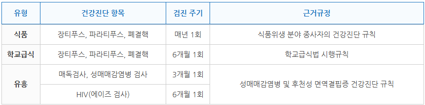 | 학교급식 종사자 | 발급일로부터 6개월 |