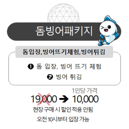 ✅ 따뜻한 실내 돔에서 빙어뜨기 체험을 하고, 빙어 튀김을 시식할 수 있는 패키지 입니다.
