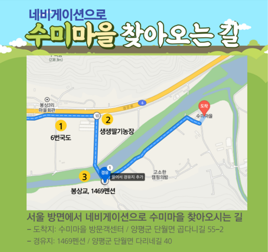▪ 내비게이션 도착지에 <수미마을 방문객센터> 입력