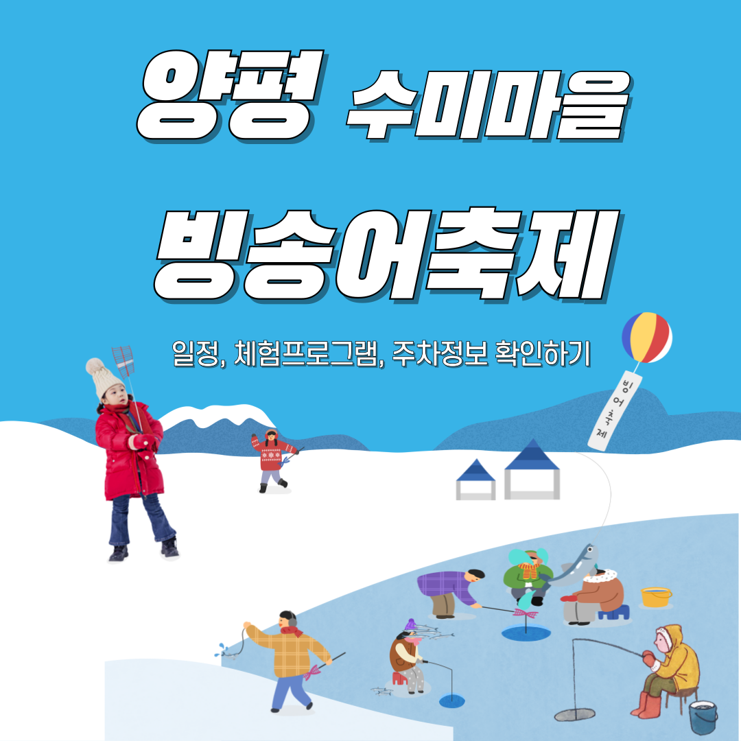 물 맑기로 유명한 양평의 수미마을은 1년 내내 축제가 이어지는 곳으로 유명합니다. 양평의 맑은 물과 수미마을의 농촌관광 컨셉이 어우러져 매년 12월 ~ 2월 진행되는 <양평 빙송어 축제> 일정과 체험 프로그램 등을 소개합니다. 겨울에 즐길 수 있는 이색 체험 꼭 한번 방문해 보세요~!