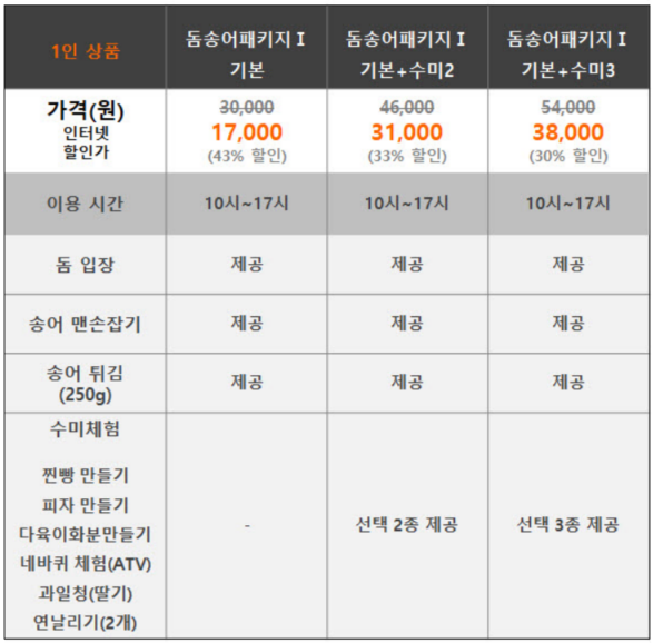 돔송어 패키지 안내