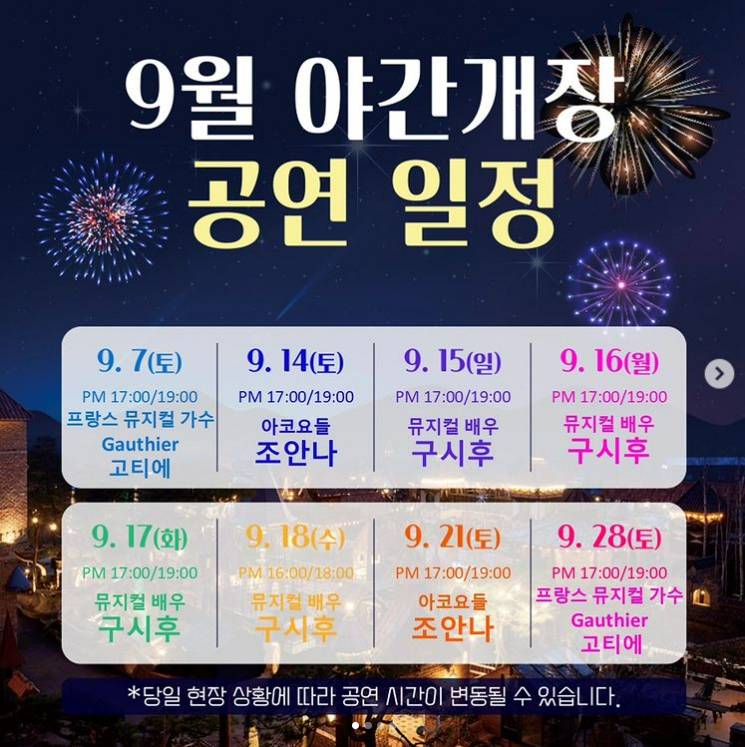 ✅ 9월 ~ 10월 매주 토요일 및 공휴일 가을 야간개장 - 입장마감 20:00