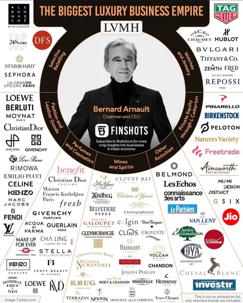 아르노 회장은 늑대처럼 야수의 심장을 가진 사업가입니다. 패션과는 관련이 없었던 아르노는 프랑스의 소도시에서 태어났고 30대 초반 아버지의 건설회사에서 경영 수업을 받았습니다. 아버지를 설득해 건설 사업은 매각하고 뉴욕에서 부동산 사업에 집중합니다. 그러다 어느 날 미국에서 택시를 탔을 때 기사에게 '프랑스에 대해서 뭘 아시느냐'라고 물었고, 기사님은 '내가 프랑스 대통령은 모르지만, 크리스찬 디올은 안다'라고 답하자 여기서 사업 아이디어를 얻습니다. 바로 명품 사업을 해야겠다고 결심합니다. 그래서 1984년 아르노는 파산 직전이었던 크리스찬 디올의 모기업을 부삭그룹을 인수하고 9000명 가까운 인원을 해고하며 구조조정은 단행했습니다. 그 결과 2년 만에 디올은 흑자로 전환했고, 큰돈을 벌어들입니다. 그렇게 디올로 명품 사업을 확장한 아르노는 1989년 슈발리에와 라카미에를 몰아내고 40세의 나이에 LVMH의 회장 자리에 오르게 됩니다. 그동안 명품업계는 가문 중심으로 소규모로 운영되는 경우가 많았습니다. 그러나 아르노 회장은 명품도 그룹사로 운영하면 시너지가 날 것이라고 생각하고 더욱더 공격적인 인수 합병을 합니다. 셀린느, 로에베, 마크제이콥스, 세포라, 펜디 등 수많은 명품 브랜드를 인수했고 2019년에는 티파니까지 손에 넣습니다. 현재는 75개의 명품 브랜드를 이끄는 기업의 수장이 됩니다.