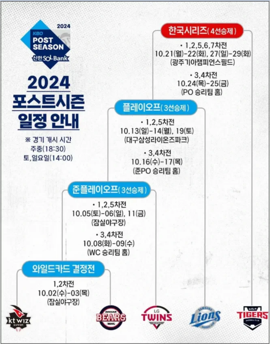 ▪ 10월 24일(목) 18:30 플레이오프 승리팀 홈구장